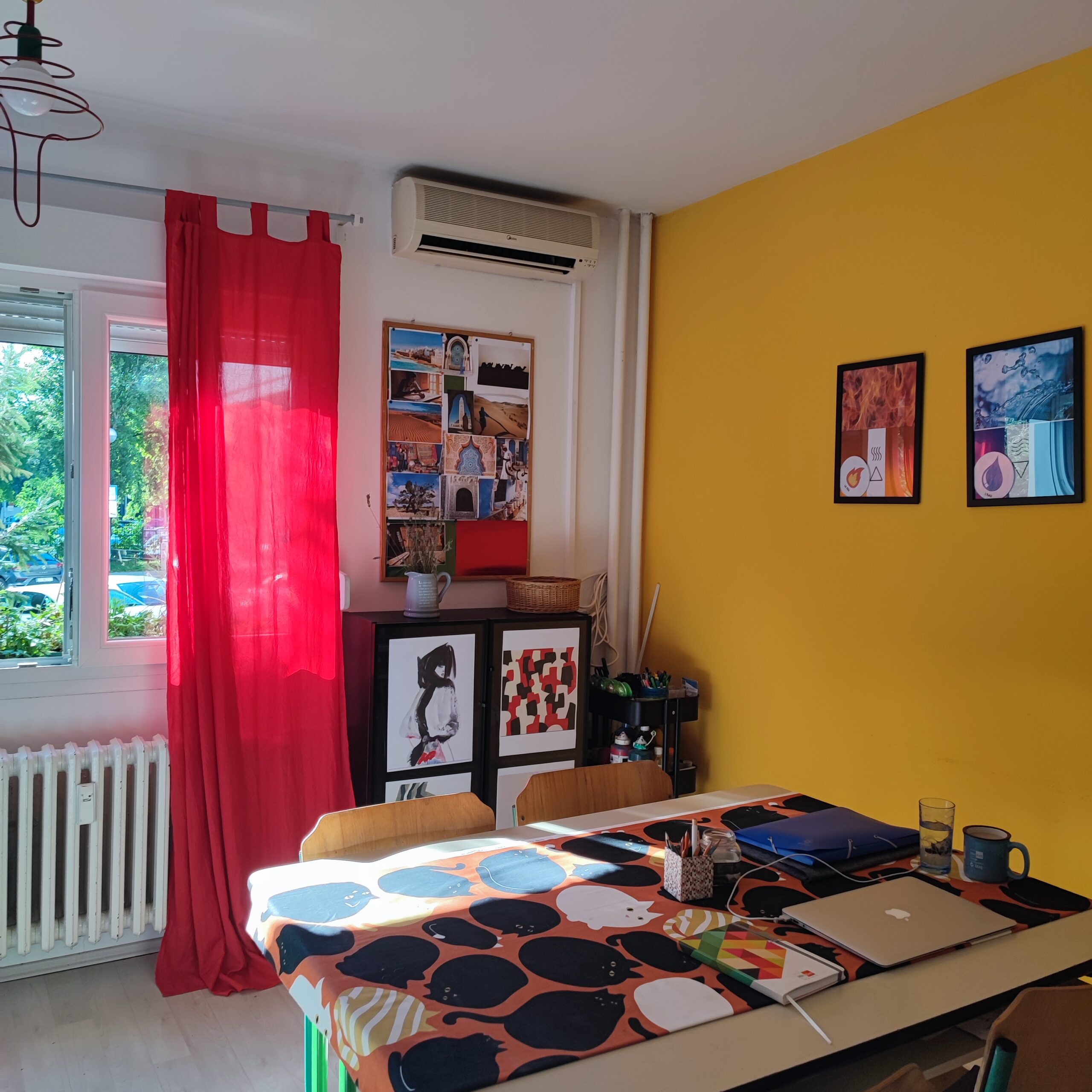 Notre maison de l’éducation créative est un lieu de 70m². Il est composé d’un espace d’accueil convivial, de trois salles de cours aménagées en fonction des tranches d’âges, d’une cuisine aménagée dans le couloir qui dessert les trois salles de cours et d’un sanitaire. Nous avons la possibilité d’utiliser un jardin public clos qui se trouve en face de notre local !